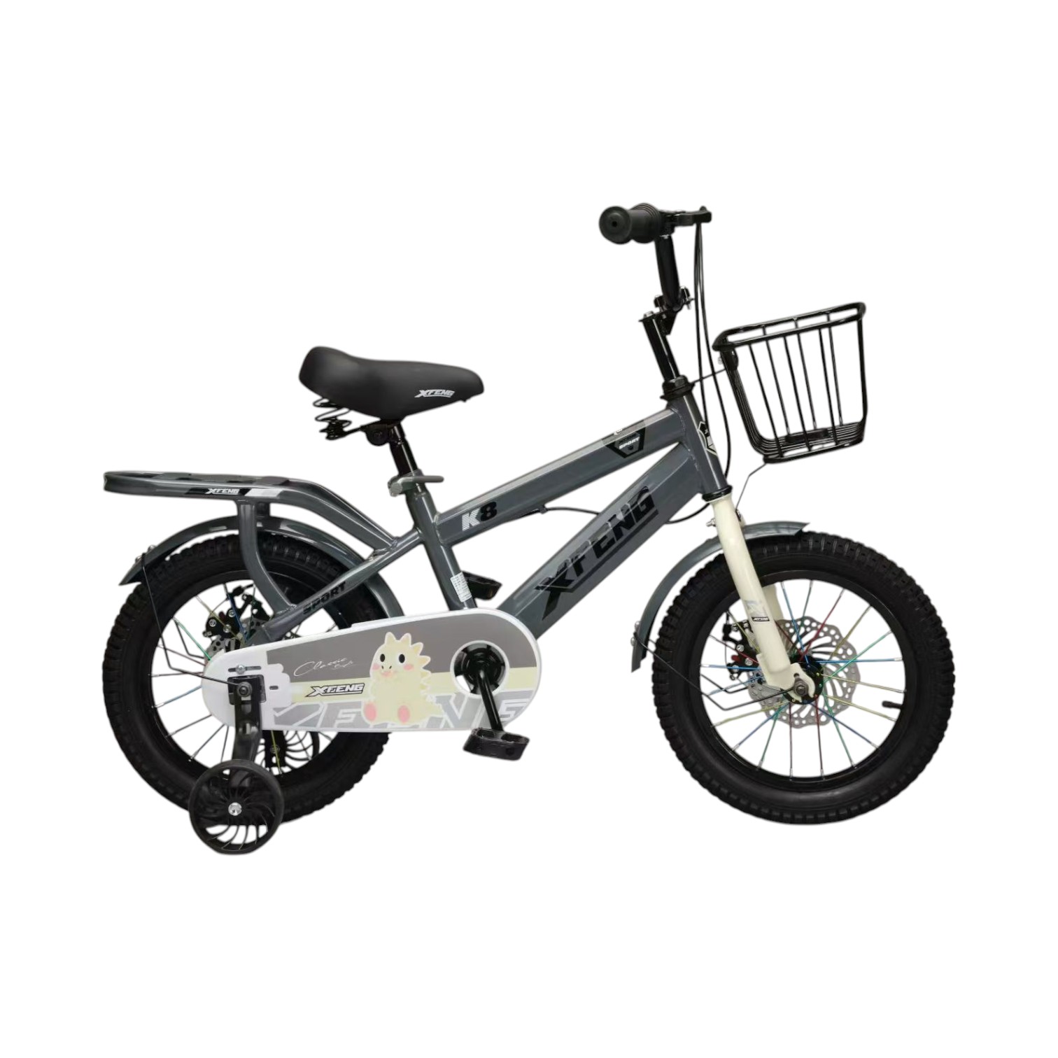 Additional Features: Front Metal Wire Basket, Integrated Rear Rack, Full Chain Guard with Decorative Cover, Detachable Training Wheels, Anti-Slip Pedals, Built-in Bell
